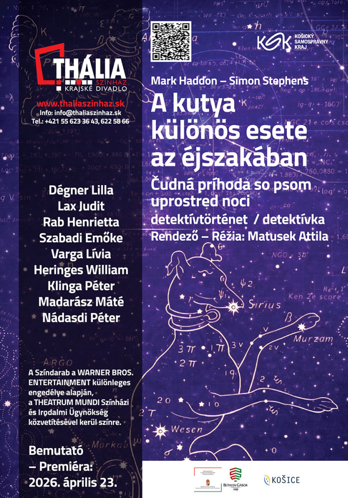 Színházunk az idei évadot egy rendkívüli produkcióval zárja: Mark Haddon világsikerű regényének színpadi adaptációja, A kutya különös esete az éjszakában érkezik Matusek Attila rendezésében.