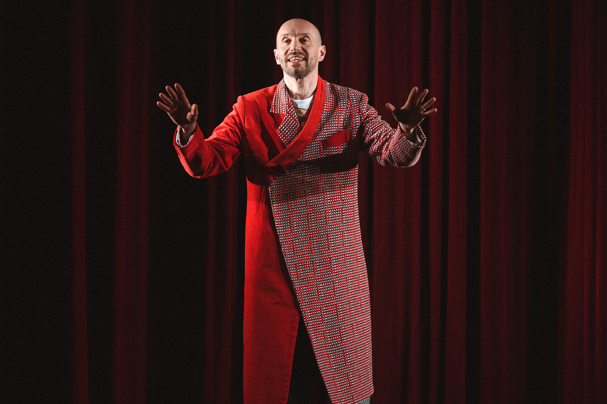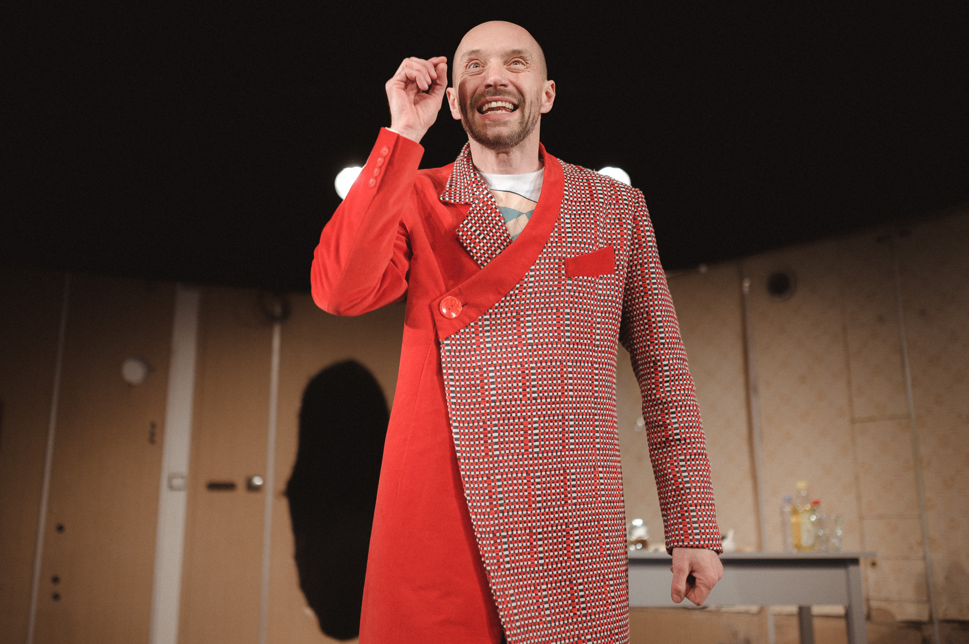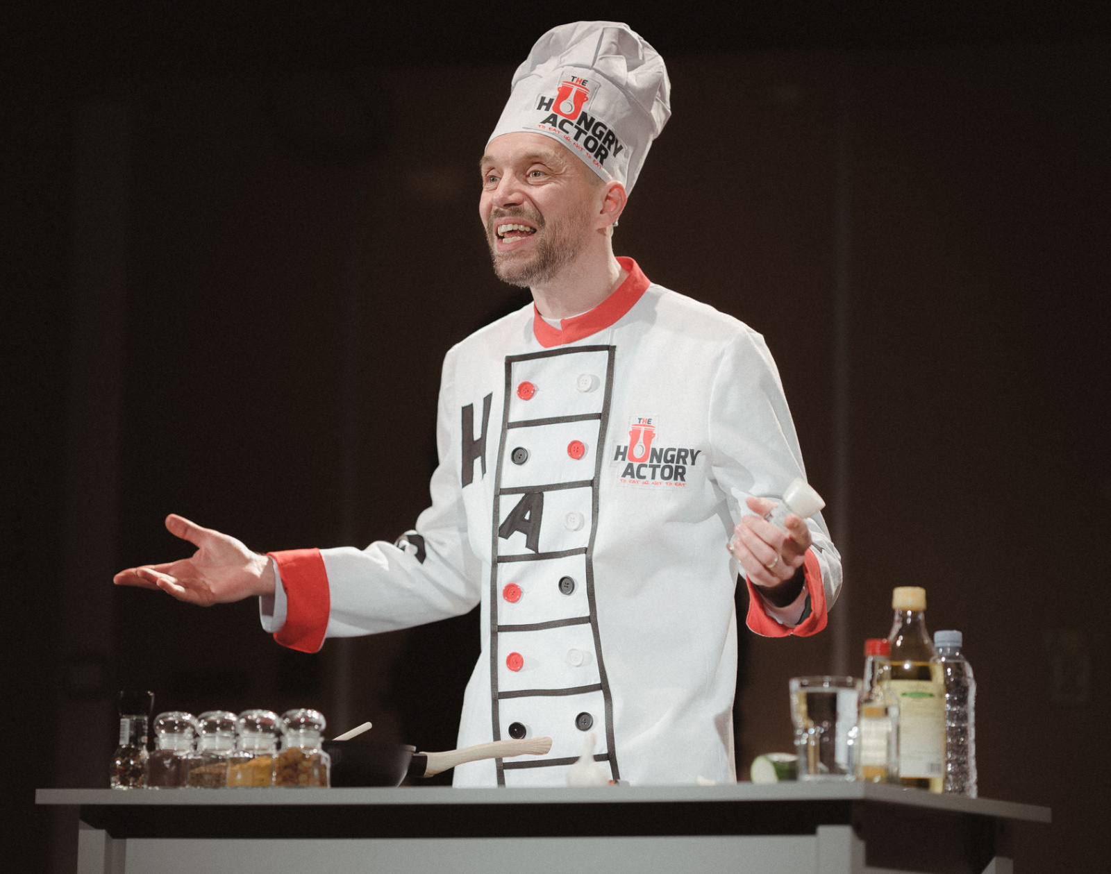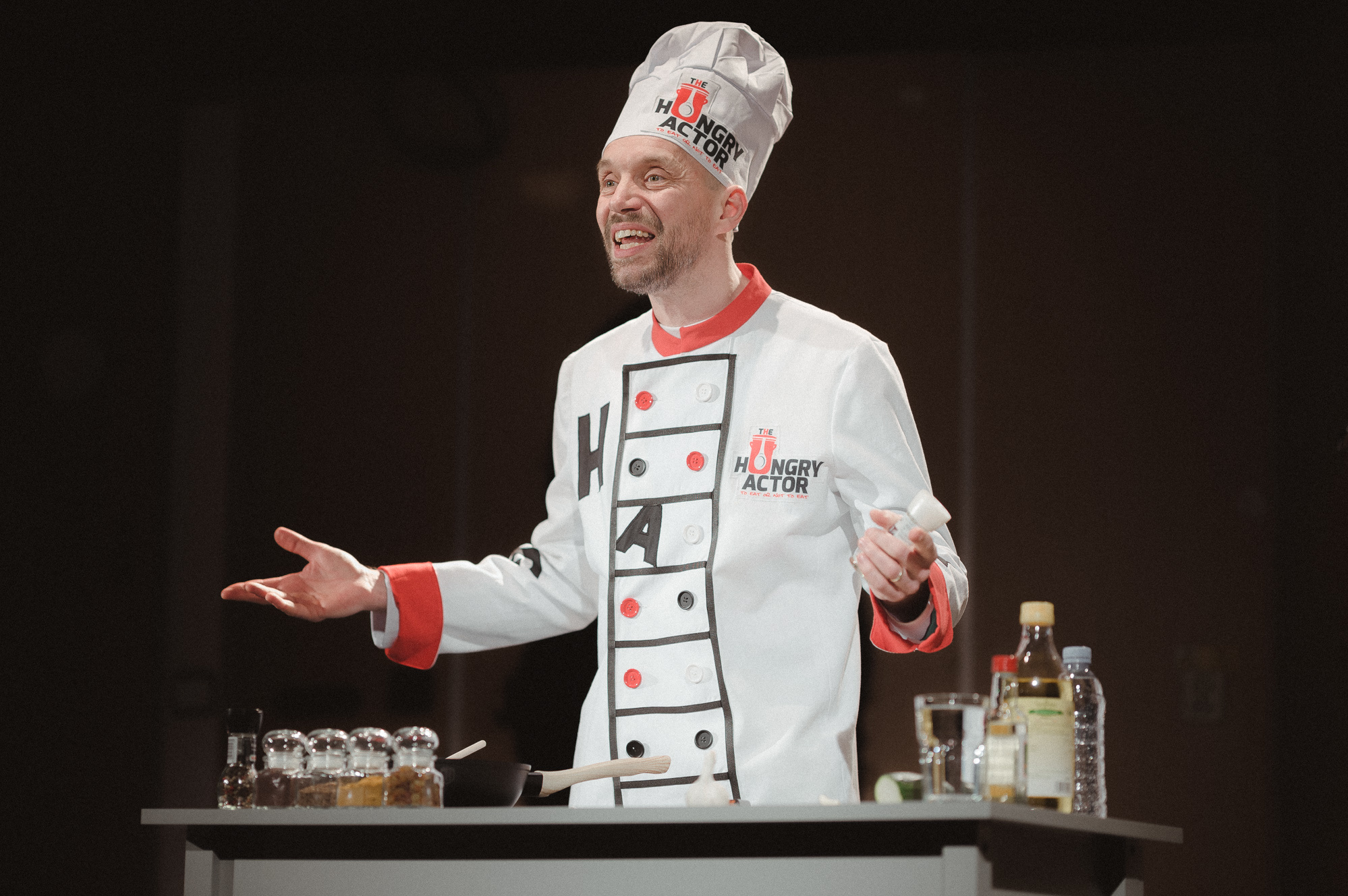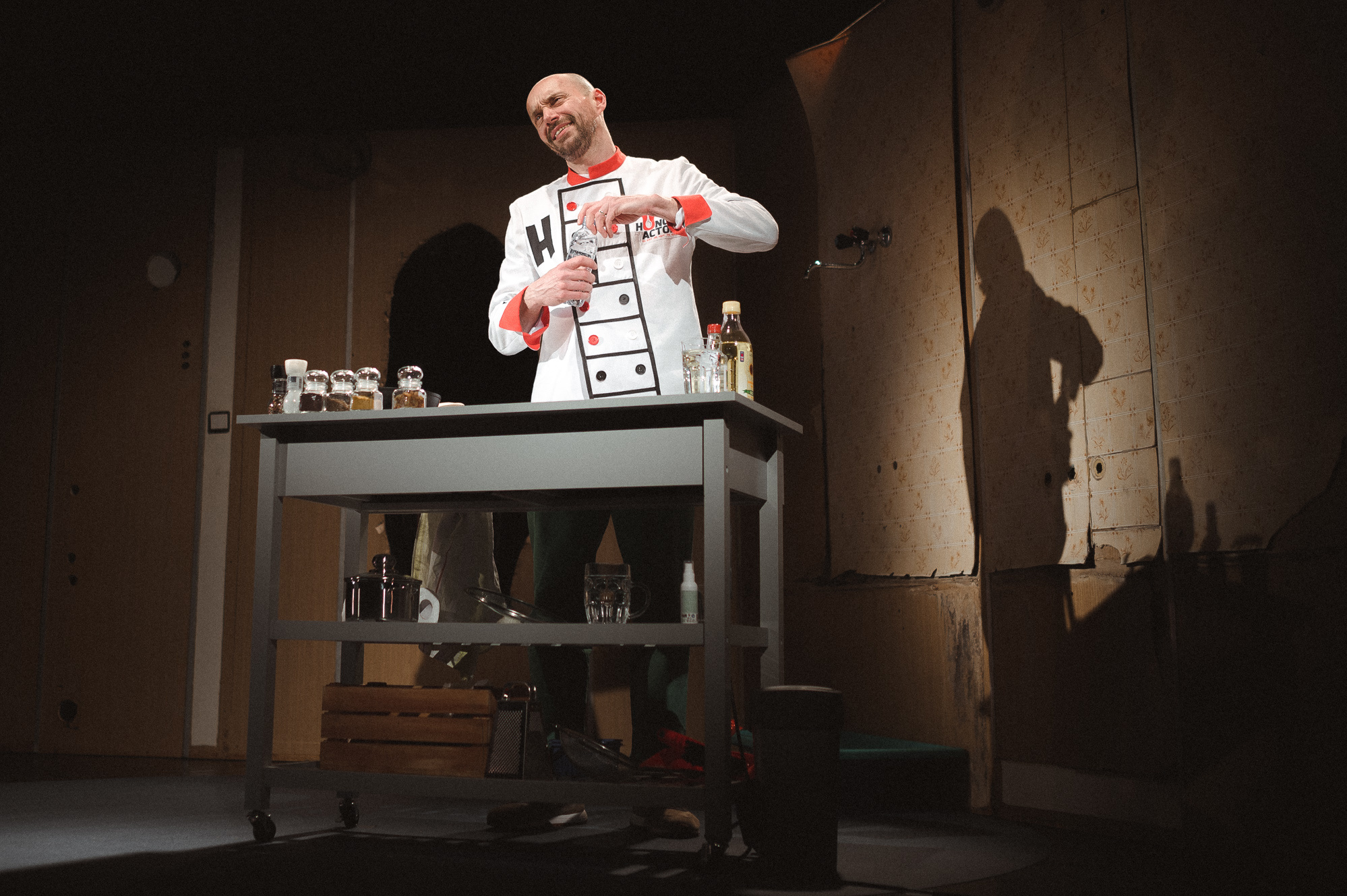 szenvedélybetegségének árnyékában. A darab elvezet egy kisfiú otthonába, egy furcsa családi környezetbe, ahol bármi megtörténhet és ahol minden nap szeretet és félelem kart-karba öltve jár. A családtörténetek bármikor vérbő stand-upcomedy-be és a nézők és az előadó közötti szórakoztató párbeszédekbe váltanak át. A közönséget ráadásul az agy titokzatos rejtelmeibe is bevezeti a nyughatatlan, sziporkázó, szellemes, de önmagával és helyzetével egyre kérlelhetetlenebbül szembesülő Éhes Színész…