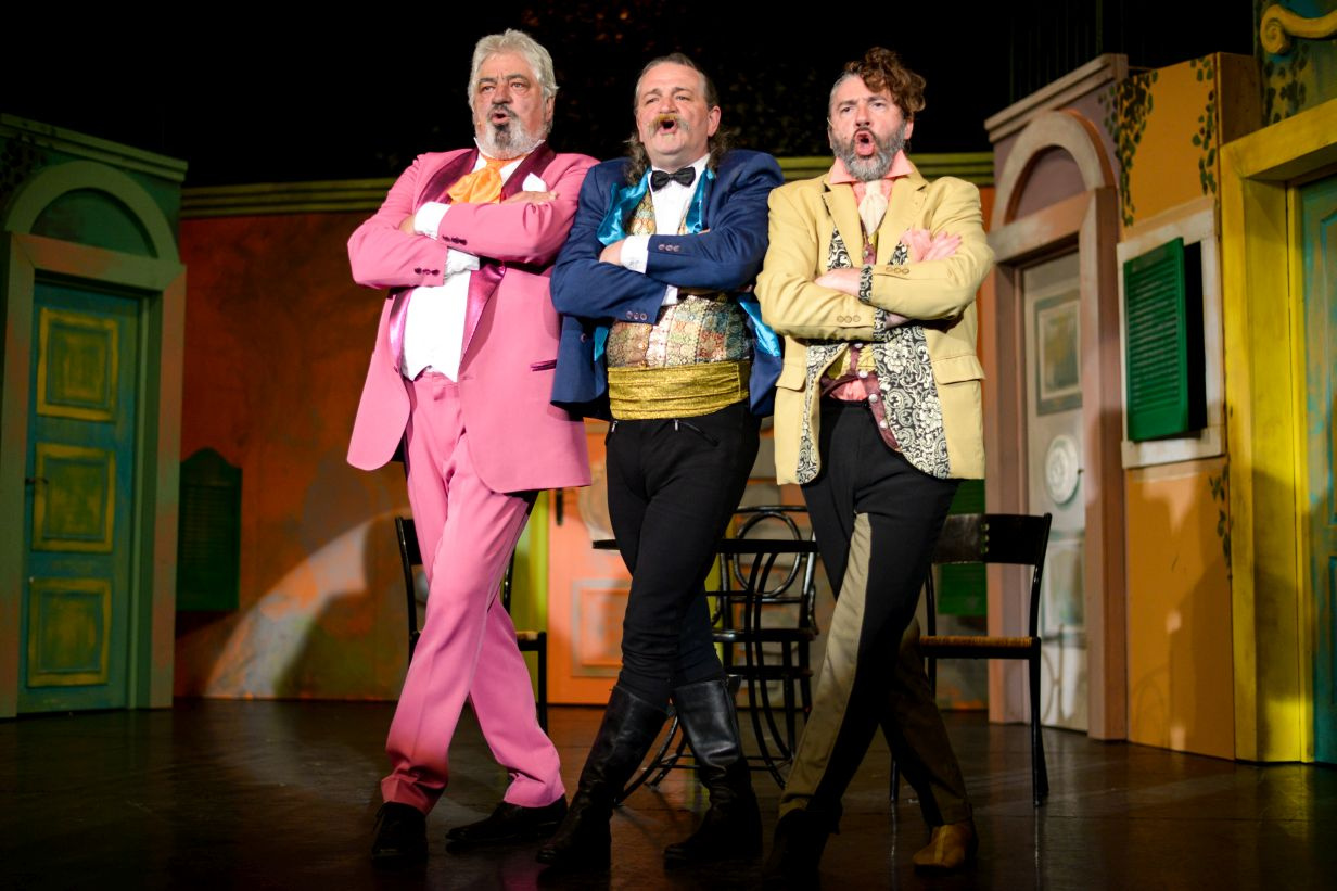 Carlo Goldoni közkedvelt Mirandolinája, a sármos, hol bájosan bumfordi, hol karcosan éles, hol melankolikusan rezignált, hol harsányan mulattató hangvételű komédia. A darab egyértelműen az olasz mester klasszikusa, de Ferkai István átiratának a lényege, hogy még pergősebb, még fordulatosabb lett a cselekmény, a prózai szöveget pedig Mikó Istvánnal karöltve fülbemászó, mediterrán hangulatú dallamokkal dúsították. Mirandolinát nem kell félteni, mindenki oda van érte, tud bánni a férfiakkal, önálló, okos nő, aki kemény kézzel, magabiztosan vezeti vállalkozását, egy közkedvelt, forgalmas fogadót. Ám mindez kevés egy olyan társadalomban, ahol egy nőnek szinte kötelező férjhez mennie, és ahol nehéz eldönteni a pénznek vagy a rangnak van-e nagyobb hatalma. Természetesen mivel igazi nőről van szó, sokszor nehéz eldönteni, mikor játszik csak és mikor őszinte, mikor teszi, mondja azt, amit mások hallani akarnak, és mikor beszél a szívéből, mikor mutatja az igazi arcát, az érzékeny, esendő nőét és mikor használja tudatosan és direkt a nő fegyvereit.